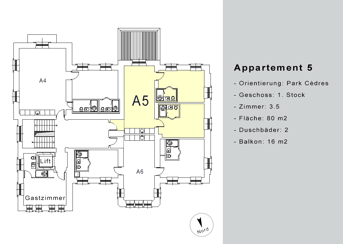 Appartement A5 1 3.5 80 16m2 vermietet Grundrisszeichnung Wohnung A5