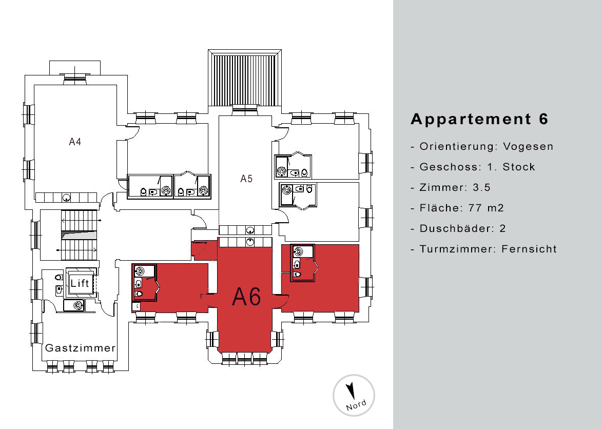 Appartement A6 1 3.5 77 - vermietet Grundrisszeichnung Wohnung A6